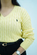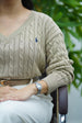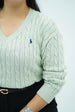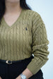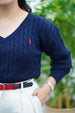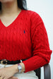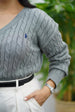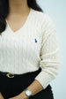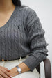 Un incontournable chic et intemporel. Ce pull en maille torsadée séduit par son col en V raffiné et sa coupe féminine confortable.